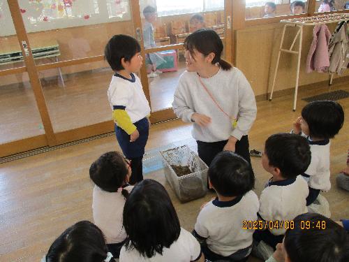 「ミミズ食べるのー!!!」子どもたちはとても驚いていました。
