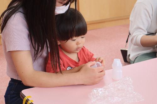 今日は音楽遊びの日でした。ヤクルトの容器でマラカスを作ったり、パネルシアターを見たりしました。