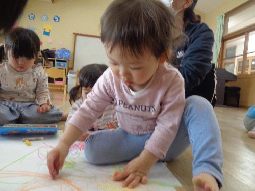 ぎゅっとクレヨンを握りしめていた手と模造紙の上を歩いた足にも