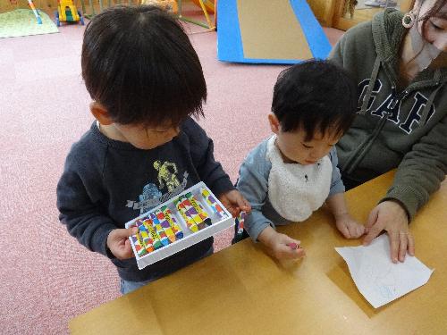 「クレヨンどーぞ」。一緒にお絵描きをしたね!
