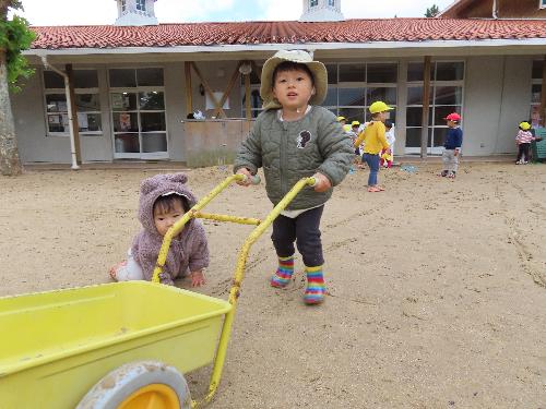 今日は晴れていたので園庭で遊んでいたら、途中で雨が降ってきて