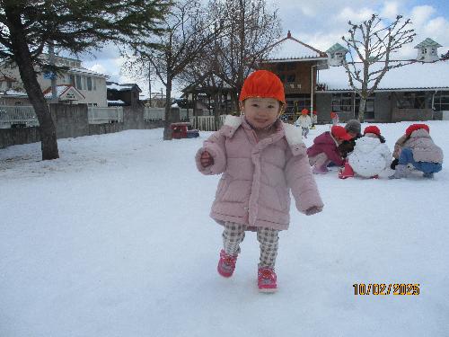 雪に上で走ってみたり、雪をなげてみたり、のびのびと遊ぶ子どもたちでした!