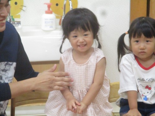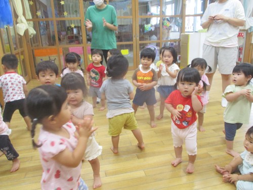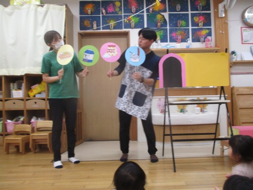 お誕生児さんが前に出てきて、上手にお名前と年齢を言えました🌟