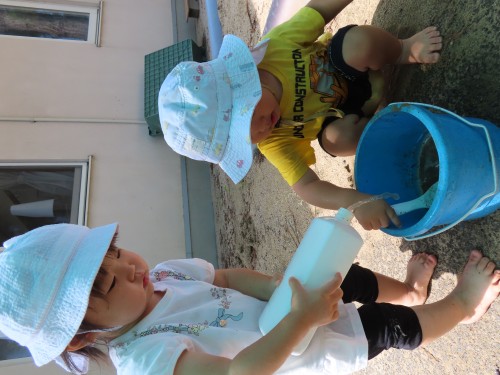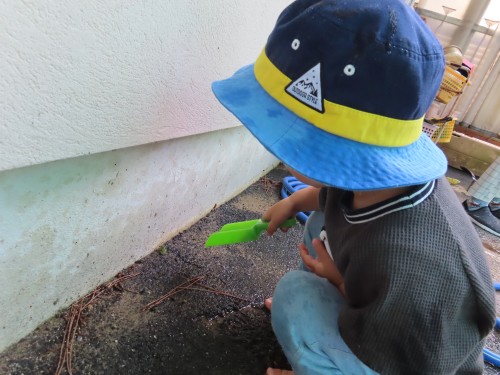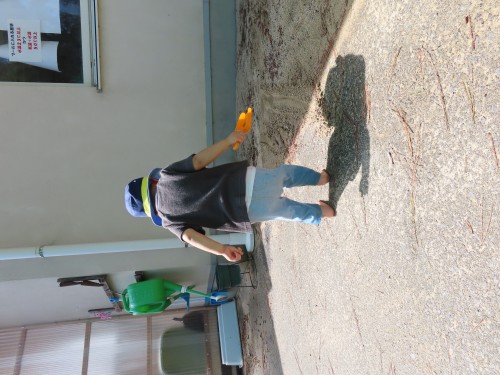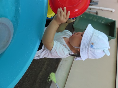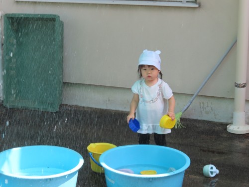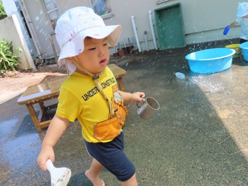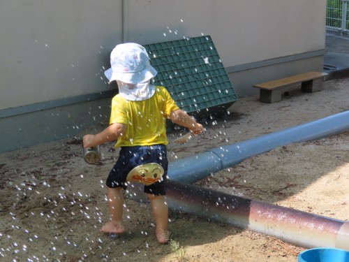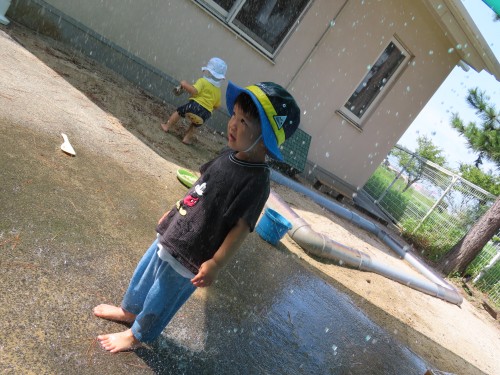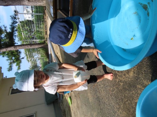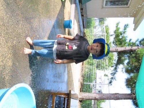今日は中庭で水遊びをしたりいっぱい遊びました。中庭にはかえるさんも遊びに来ていましたよ☆彡