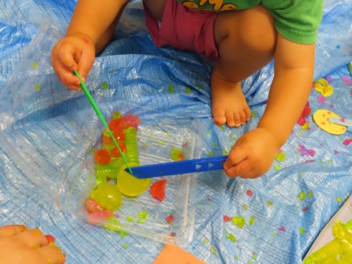 慣れてくると道具を使って寒天を切ったりもして遊んでいました