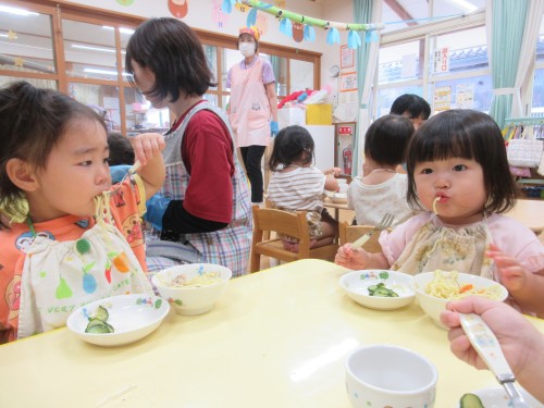 「今日はやきそばだよ~」というと嬉しそうなりす組さん!