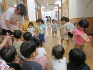 ひばり組のお兄さんお姉さんやたくさんの先生たちにも応援してもらい、嬉しそうな表情を浮かべるりす組さんでした😊