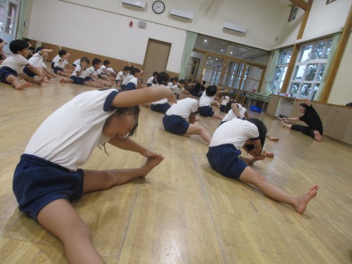 先生たちは体がとっても固いけど、子どもたちは柔らかいです!