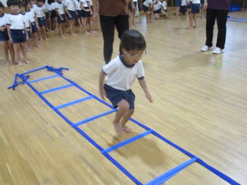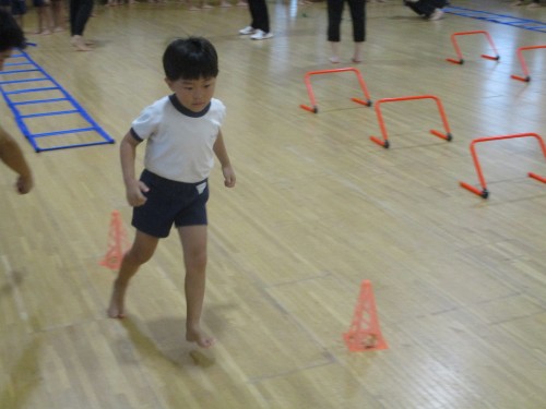 今日は雨が降っていたので、室内でラダーやハードルなどを使って体を動かしました☔