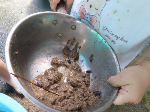 中庭に出るとダンゴムシさんがいっぱいお散歩していたり、おうちから出てきていたよ♪