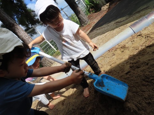 今日はお外が涼しかったので中庭でいっぱい遊びました☆