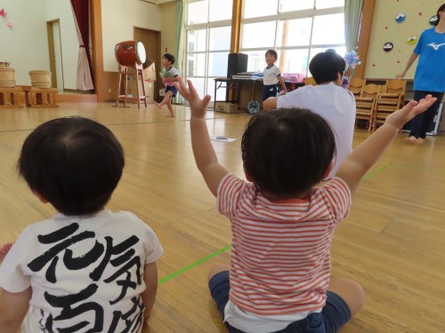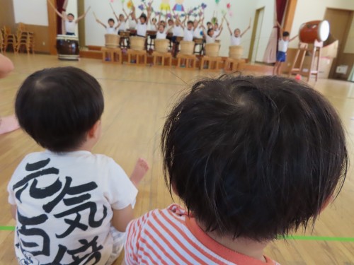 遊戯室にふくろう組さんの太鼓を見に行きました!
