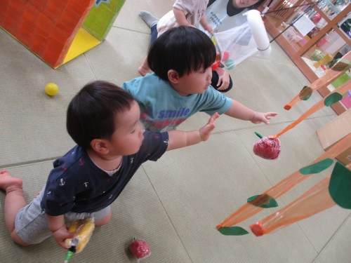 2人して果物に一生懸命手を伸ばしていてかわいいです💕