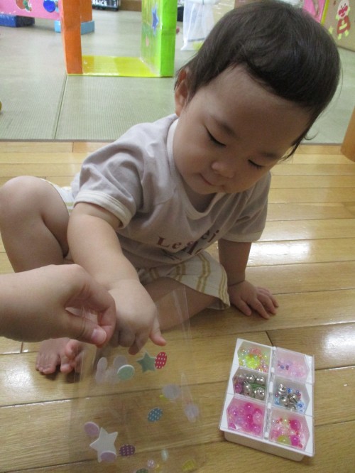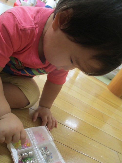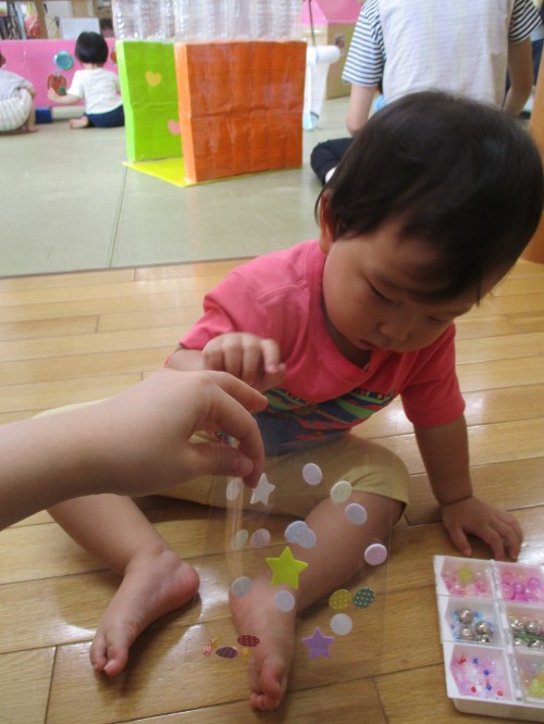 袋が可愛くなったら、自分でビーズを選び袋に入れます!!