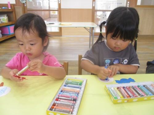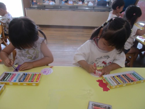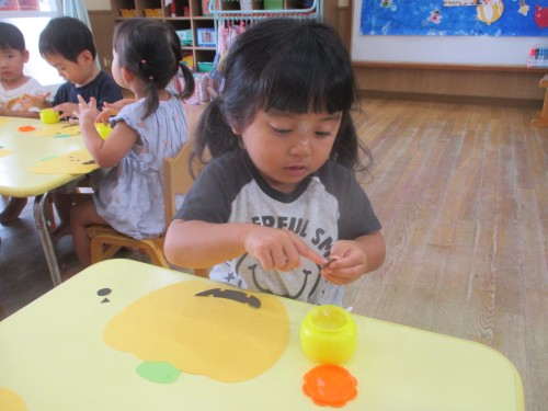 のりで、お顔のパーツを貼りました😊