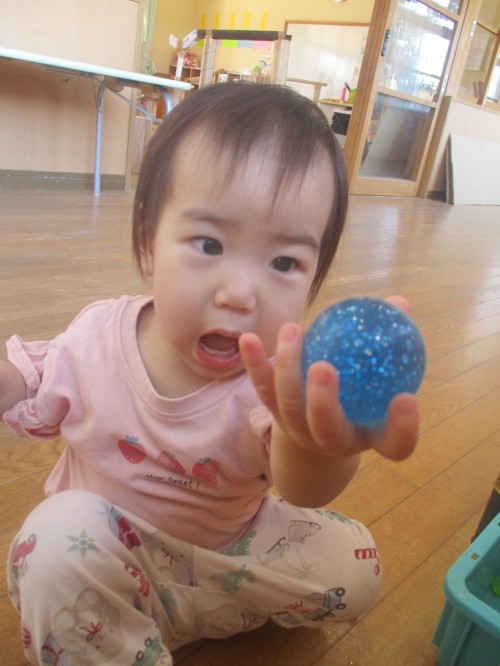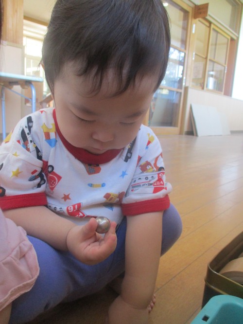散歩していると、ビー玉をみつけ、触ったり、じーっと見ていましたよ👀