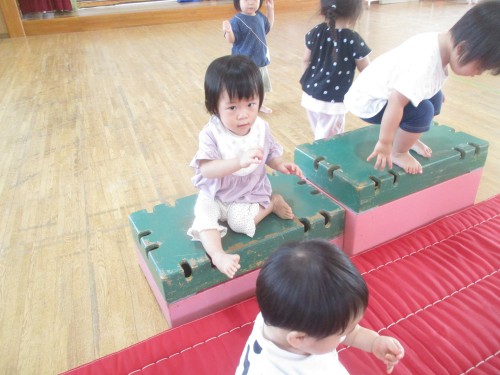 巧技台に挑戦する子どもたちです😊