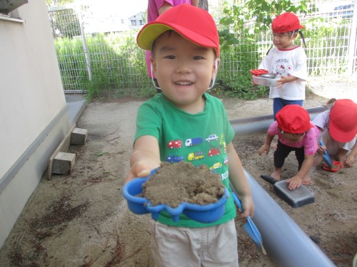 朝ご飯をモリモリ食べて、元気にかけっこや