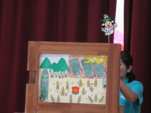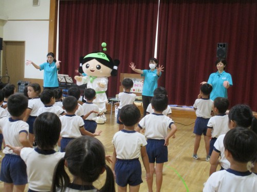 紙芝居を読んでくださったり、うんたくん体操を一緒に踊ったりしました。