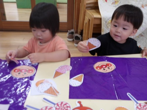好きなキャラクターやおやつを選んで次々に手に取り貼るこどもや、アイスクリームが好きでアイスいっぱいのまんとにするこどももいましたよ!どれもかわいらしいこどもたちらしいマントが完成しました★またハロウィンが終わってから家庭に持ち帰ります。楽しみにしていてください。