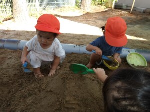 砂場では、一緒に山を作ったり、山をスコップで崩して遊んだりして楽しみました⭐