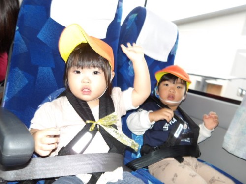 バスでは周りの風景を見て空に飛ぶ鳥を指さしたり、すれ違う乗り物に興奮し大きな声が出る場面もありました。