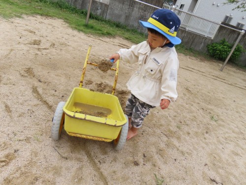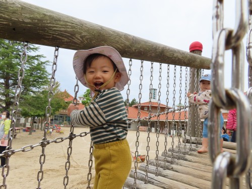 お部屋で朝の会をした後、園庭に出ていっぱい遊びました!