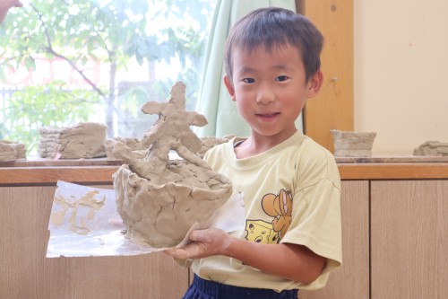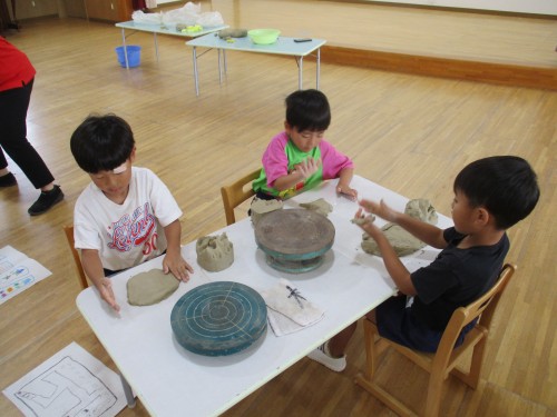 陶芸は、お皿だったりコップだったりを作って大きな窯で焼いて出来上がるもので初めは土のようなものだよと教えてもらいました。
