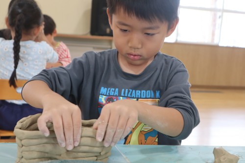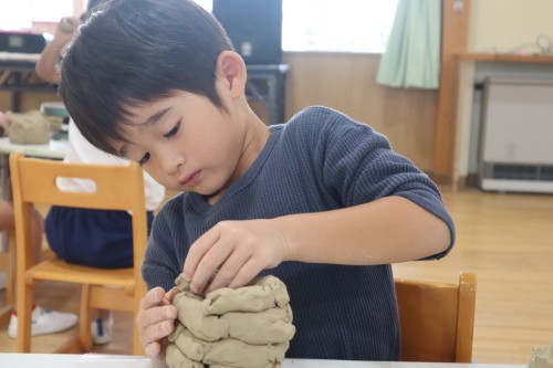 陶芸の土を触ると