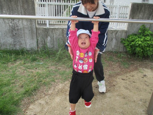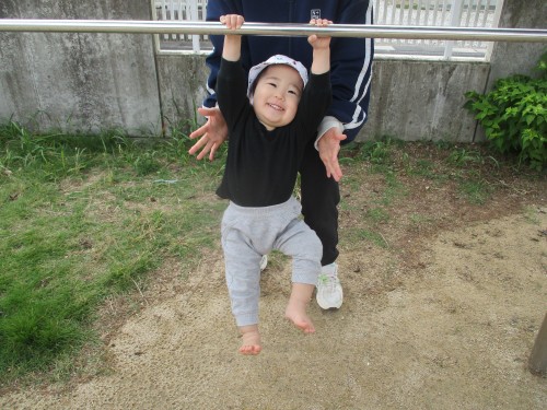 月齢の高い子どもたちは鉄棒にぶら下がれるようになりました🌟すごい!!