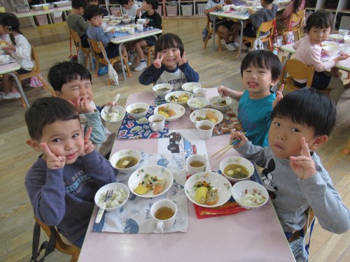 今日の給食はつばめ組の好きな味噌汁が出ました!