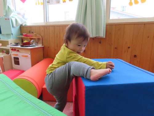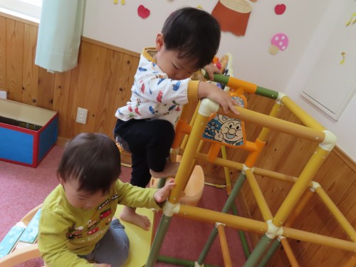 一番上までチャレンジ… 自分で登るよ!