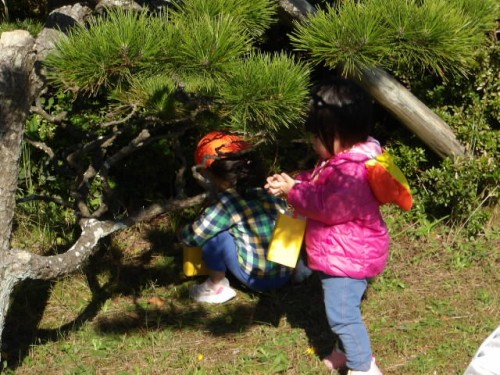 木の実を拾ったり、落ち葉を拾ったり木の枝を拾っています!