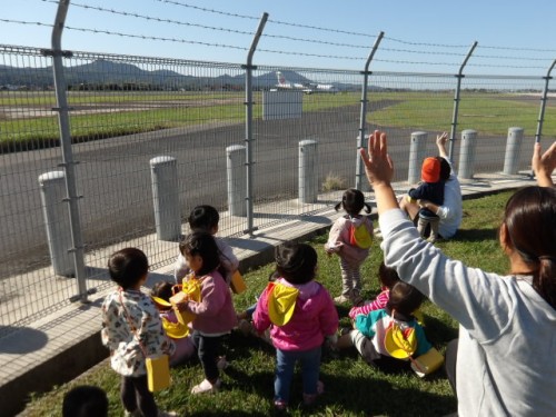 飛行機も見れました!プロペラ機が着陸する様子をみんなで見ました!大きな飛行機に大興奮の様子です☆