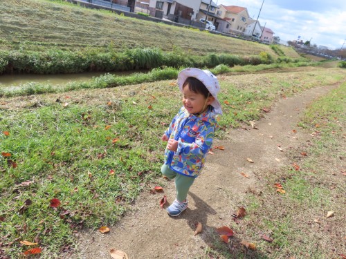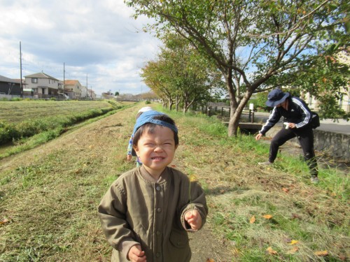 はじめて五右衛門川にお散歩だったけど秋がいっぱいあって楽しかったね!