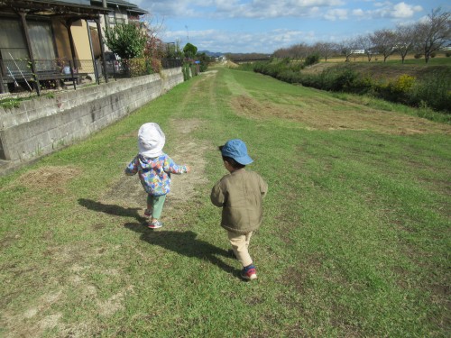 五右衛門川の土手につくとお友だちとよ~いどんをして走ったよ!