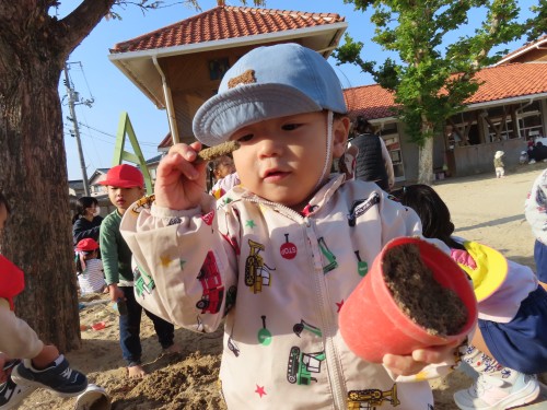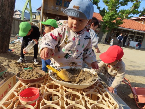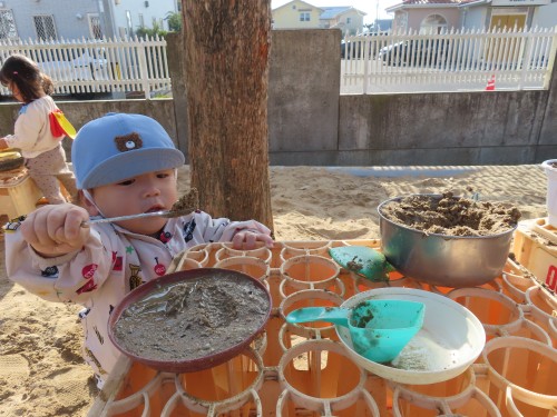 砂場でお兄さんお姉さんたちにまざってごちそう作り☆彡