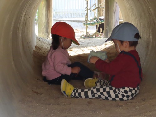 トンネルの中ではお友だちと一緒に遊んでいます✨