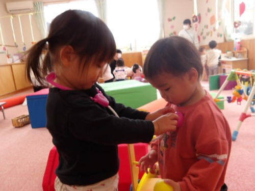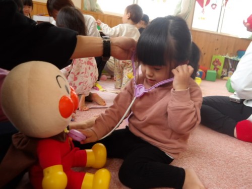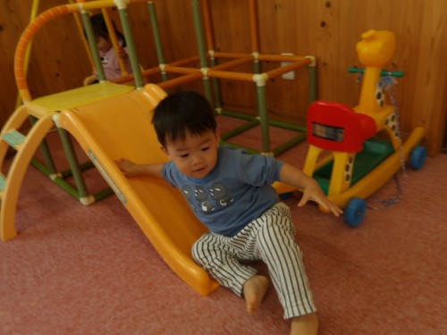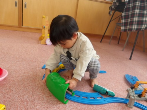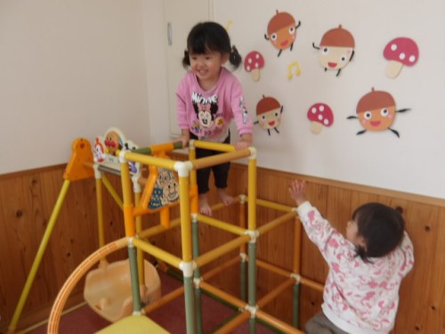 ジャングルジムをしたり、滑り台を滑ったり、プラレール、お医者さんごっこ、