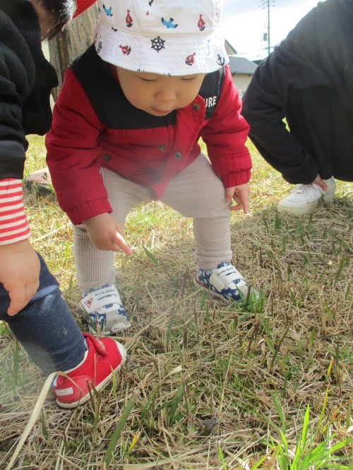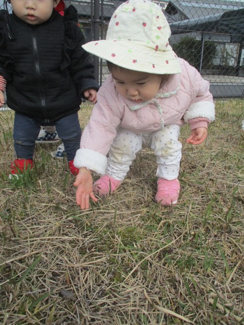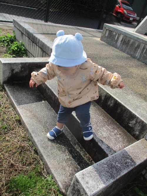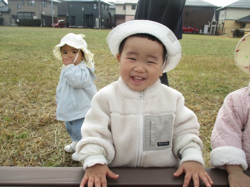 ベンチの反対側から「ばあ!」と顔を出すと笑顔になってくれました😊