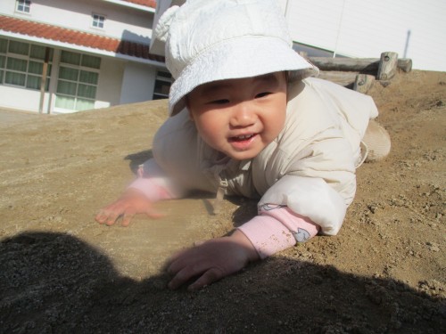 坂道をずりばいで降りて楽しそう😊