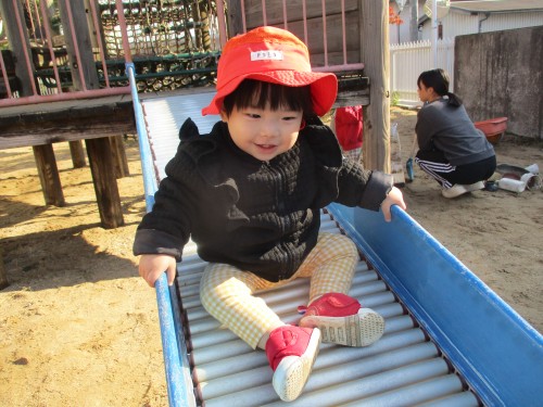 自分で滑り台を滑れて嬉しそう✨
