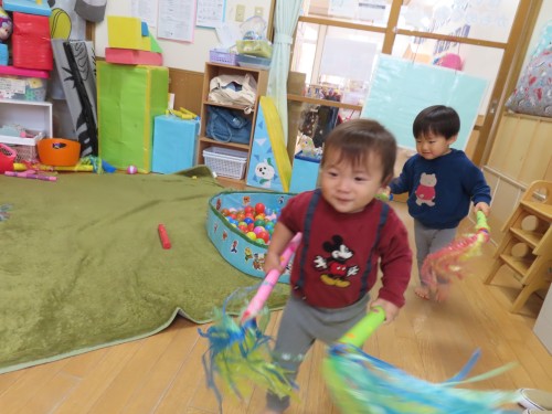 今日は少し寒かったけど園庭に出て遊んだり、お部屋で元気いっぱい遊びました✨