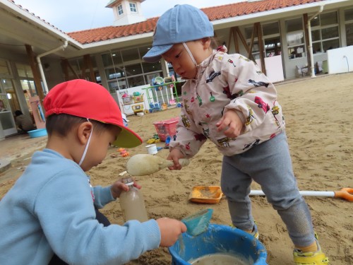 園庭ではよ~いどん‼をして走ったり、滑り台をしたり、砂場でひばりのお兄さんと遊んだり型抜きをしていっぱい遊びました✨