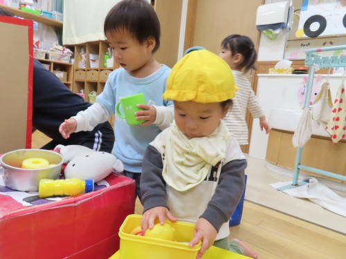 お部屋では衣装を着てお家に入って遊んだりごちそうを作ったりして遊びました✨