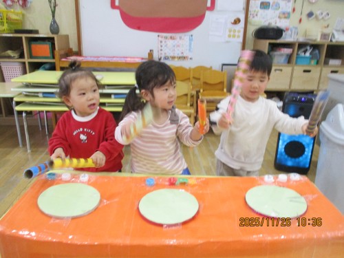 バケツも太鼓に変身します!!