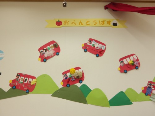 はさみやテープ、ボンド、のりを使って一生懸命考えて作った作品です🚌