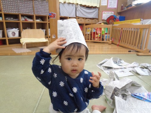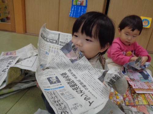 新聞紙を着たり帽子をかぶったりして楽しみましたよ♪