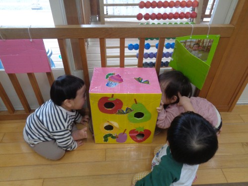 両サイドから穴を覗くと、お友だちの顔が見えてきゃはきゃは笑いあっていました💛
