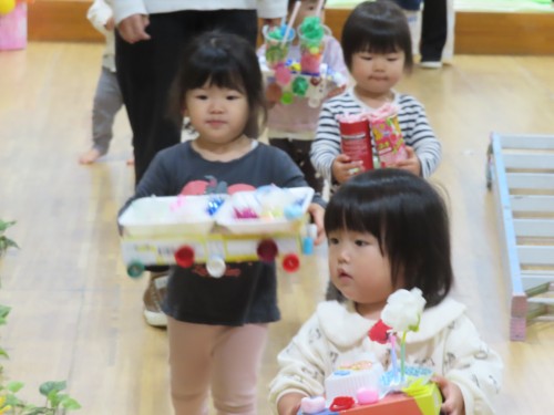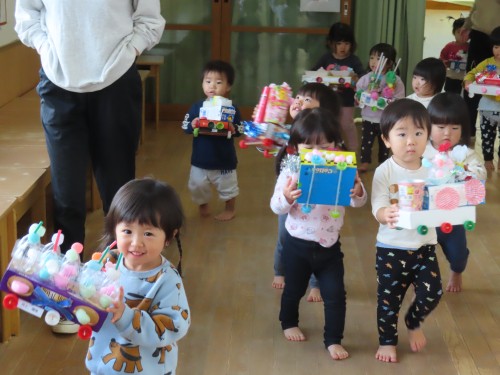 今日は家庭の方に大事なバスを持って帰ります。お子さんのバスで一緒にあそんでみてください。